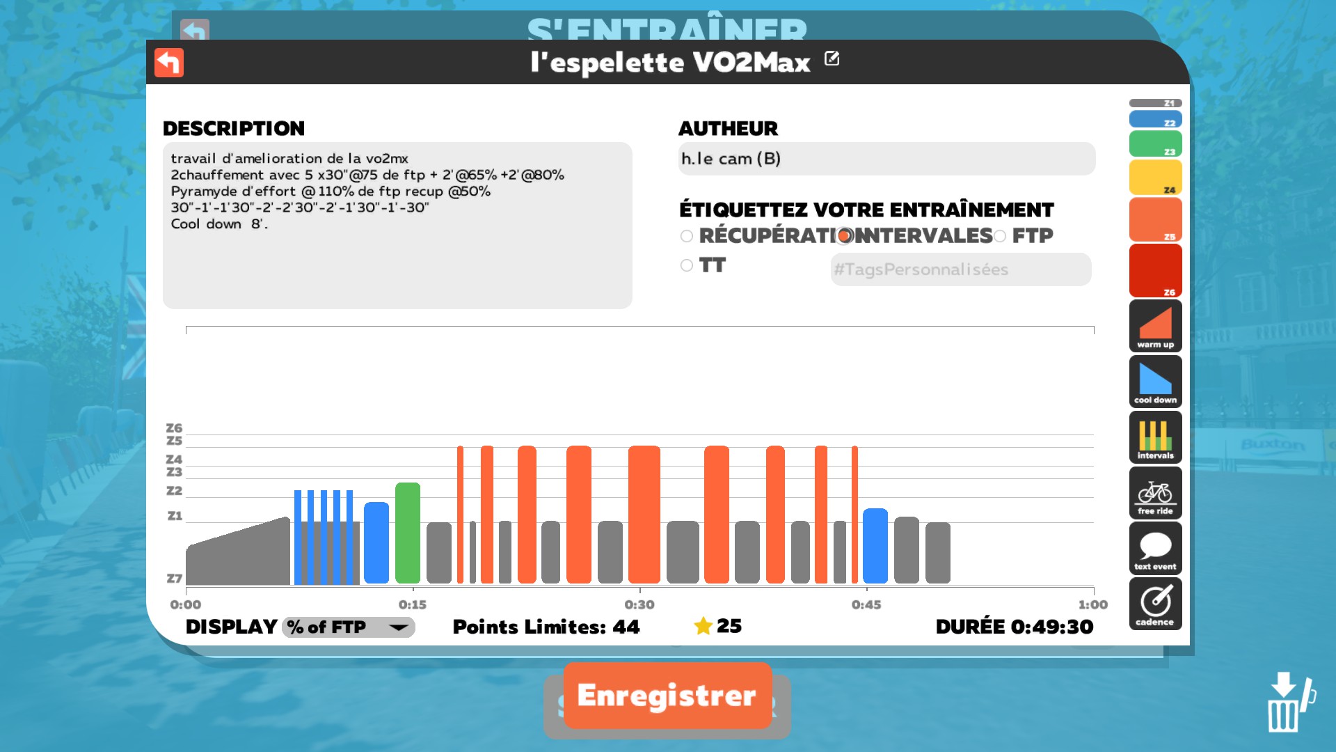 Séance Home Trainer semaine 12 Détails Mis à jour : dimanche 2 octobre 2022 19:35 Écrit par hl Affichages : 2038 Séance de la semaine: Fichier Zwift