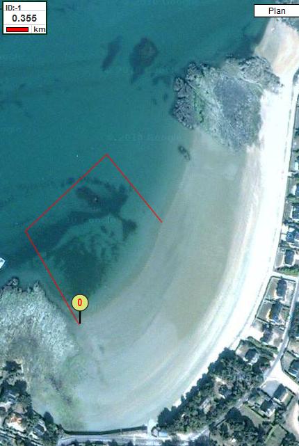 Les départs et arrivées ont lieu sur la plage de Sorlock (en jaune pour le sprint, en rouge pour le découverte).